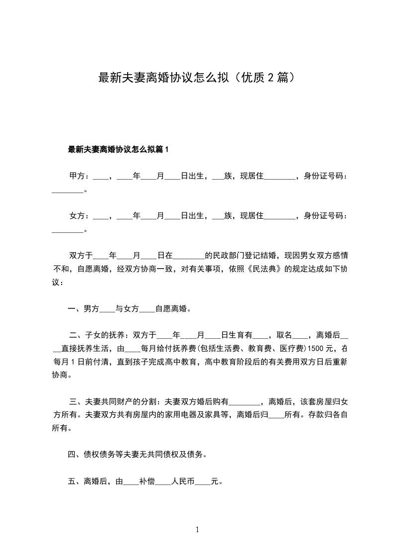 (1)夫妻婚后共有房屋坐落在______市______路______住房一套。现协商该套房产归______方所有,______方同意在办理完离婚手续后配合______方办理产权变更手续。