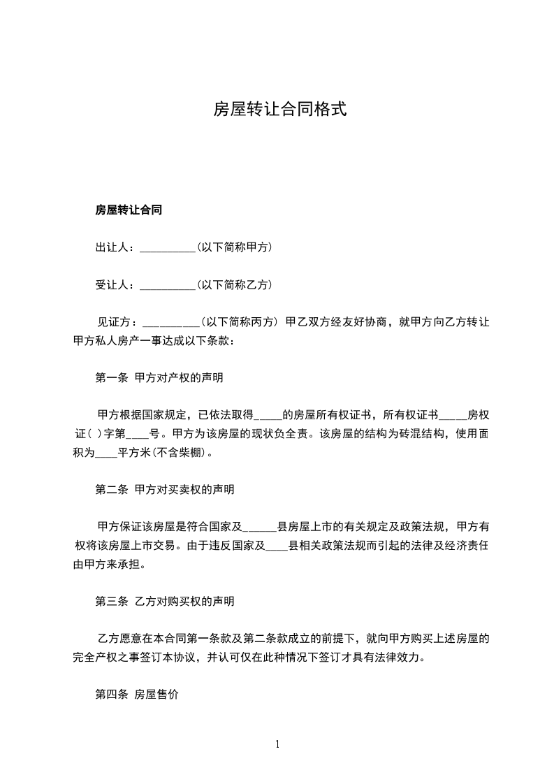 见证方:__________(以下简称丙方) 甲乙双方经友好协商,就甲方向乙方转让甲方私人房产一事达成以下条款: