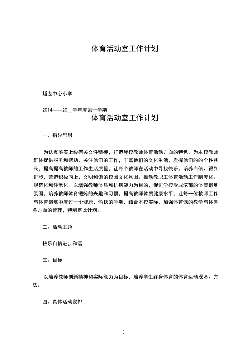 体育活动室工作计划