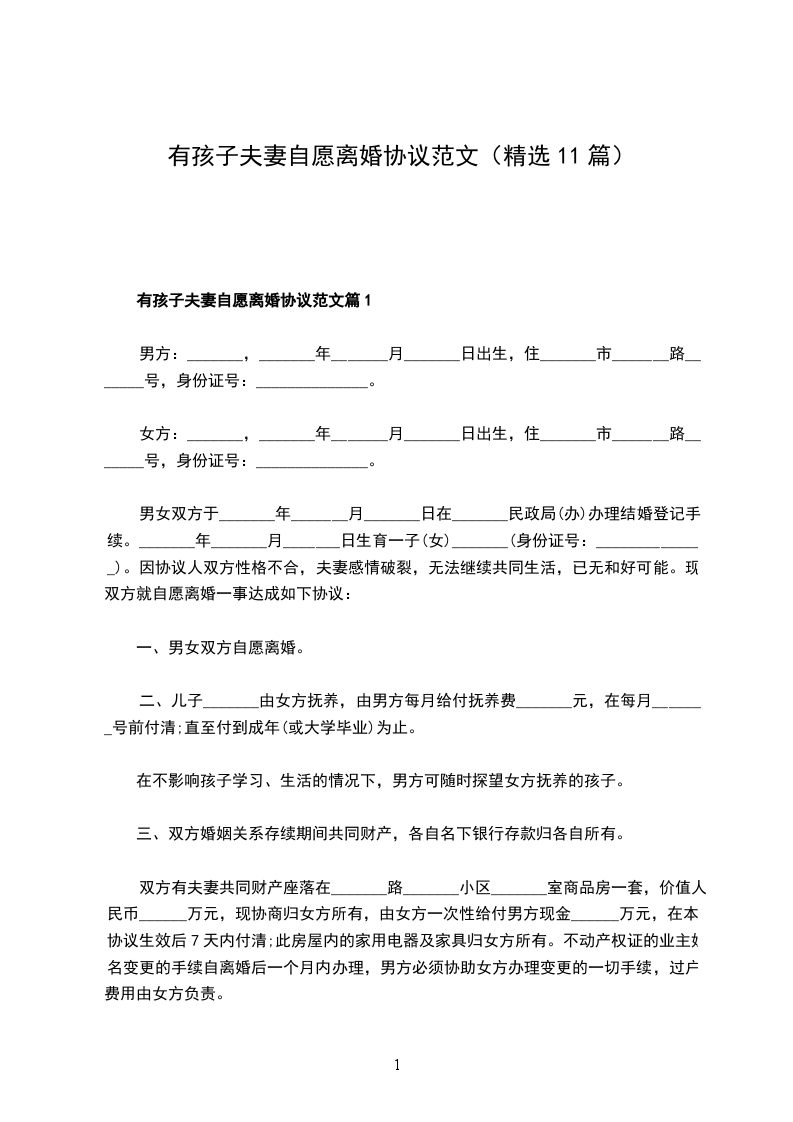 男女双方于_______年_______月_______日在_______民政局(办)办理结婚登记手续。_______年_______月_______日生育一子(女)_______(身份证号:______________)。因协议人双方性格不合,夫妻感情破裂,无法继续共同生活,已无和好可能。现双方就自愿离婚一事达成如下协议: