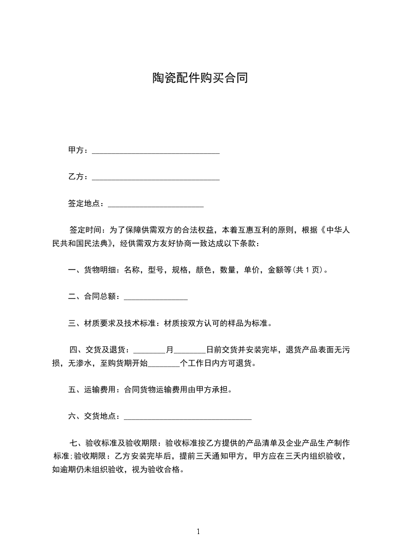 一、货物明细:名称,型号,规格,颜色,数量,单价,金额等(共1页)。