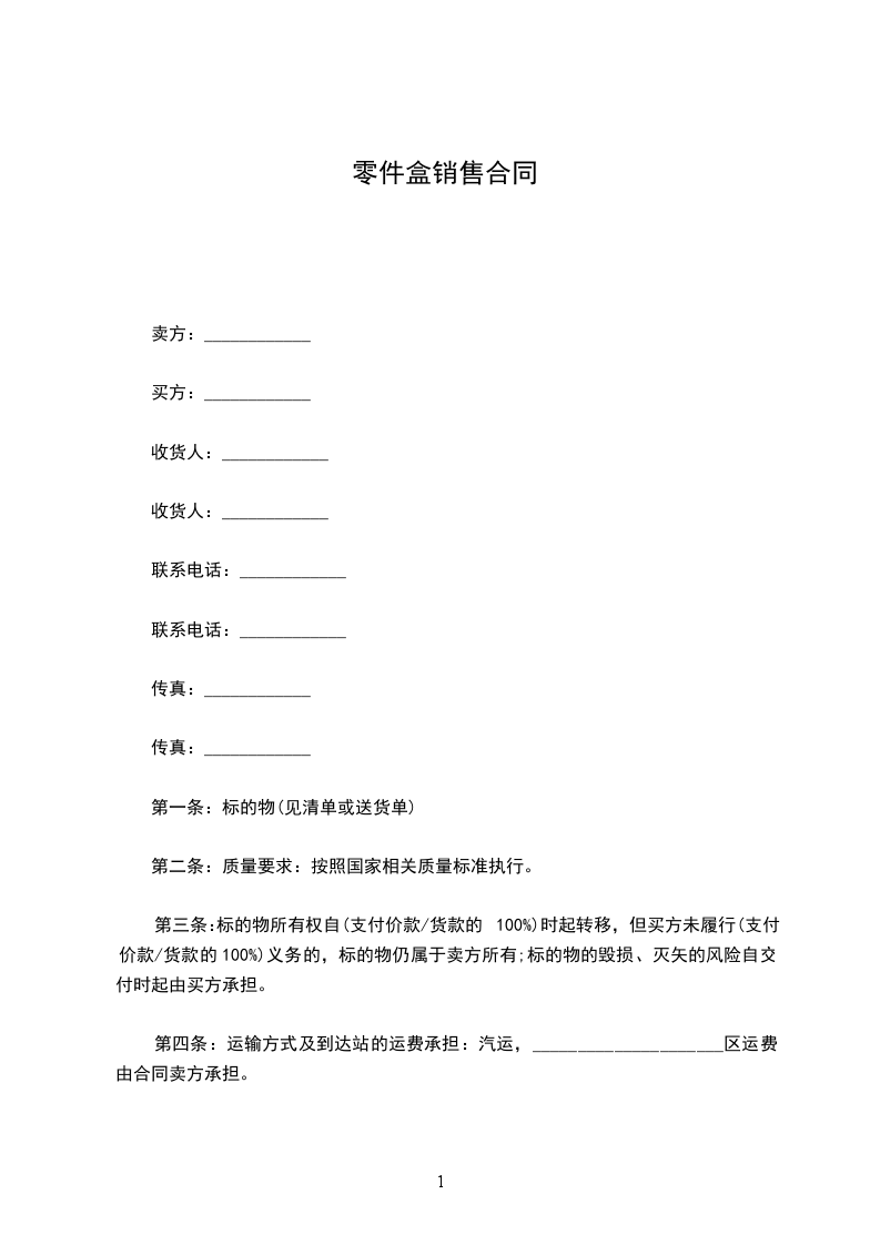 第一条:标的物(见清单或送货单)