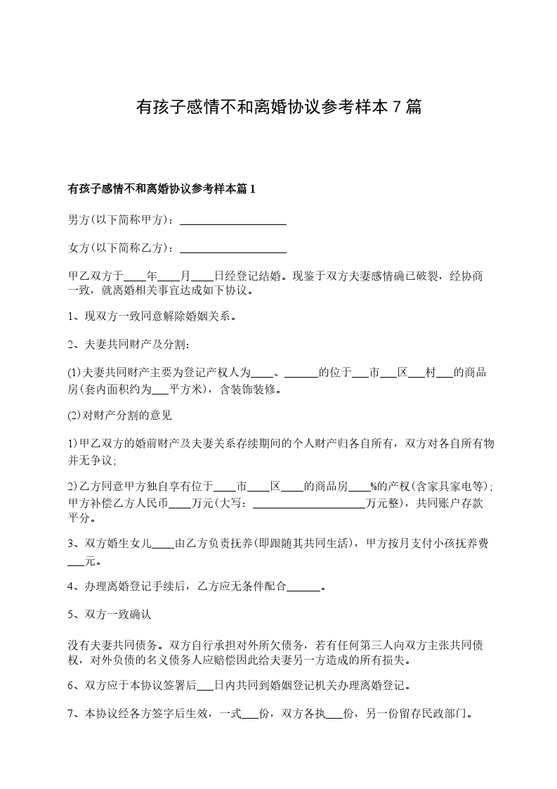 本协议一式三份。男、女双方各执一份,婚姻登记机关存档一份,自婚姻登记机颁发《离婚证》之日起生效。