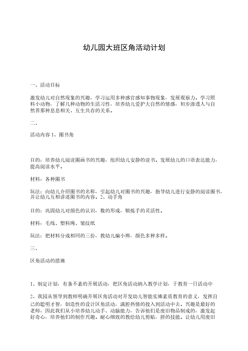 3、可陈列幼儿构思的作品,以不断提高他们活动的兴趣。