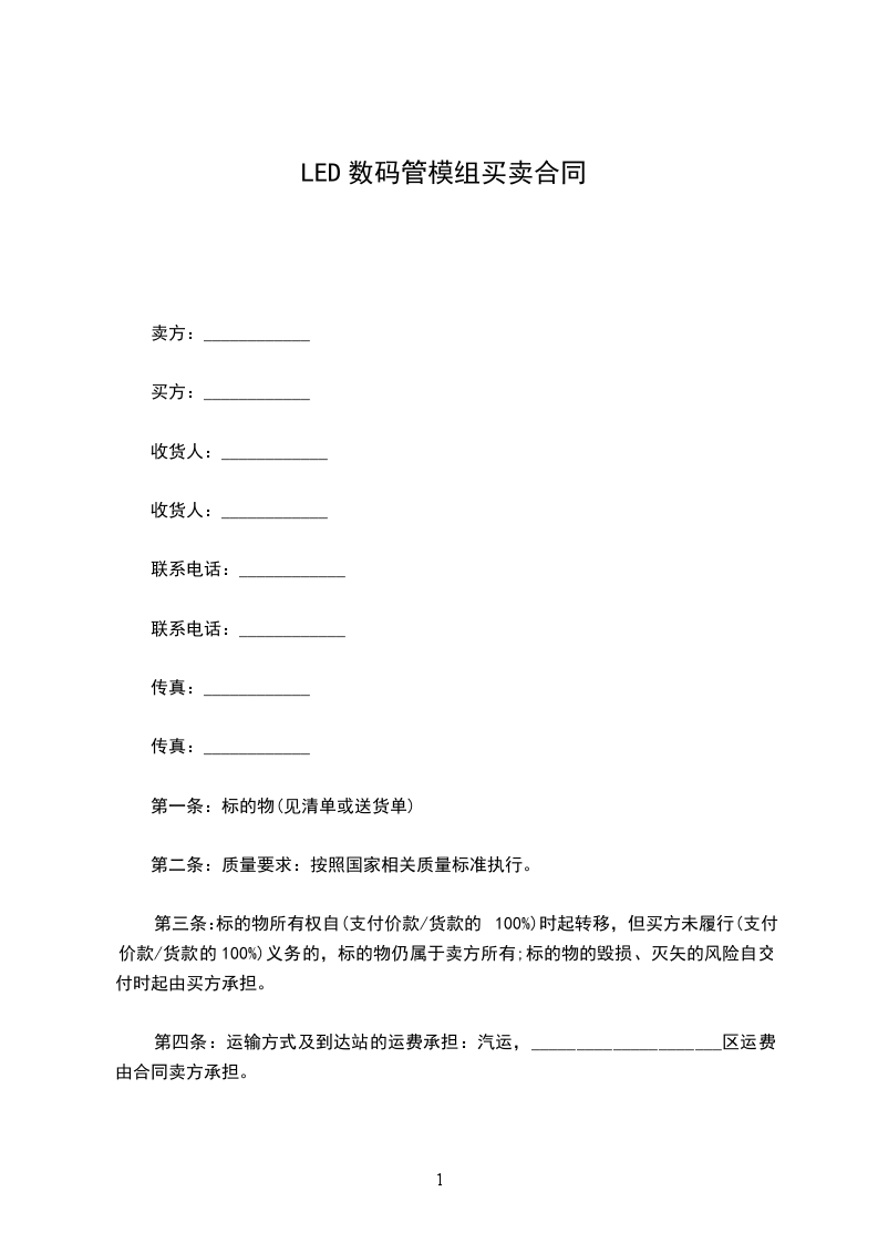 第一条:标的物(见清单或送货单)