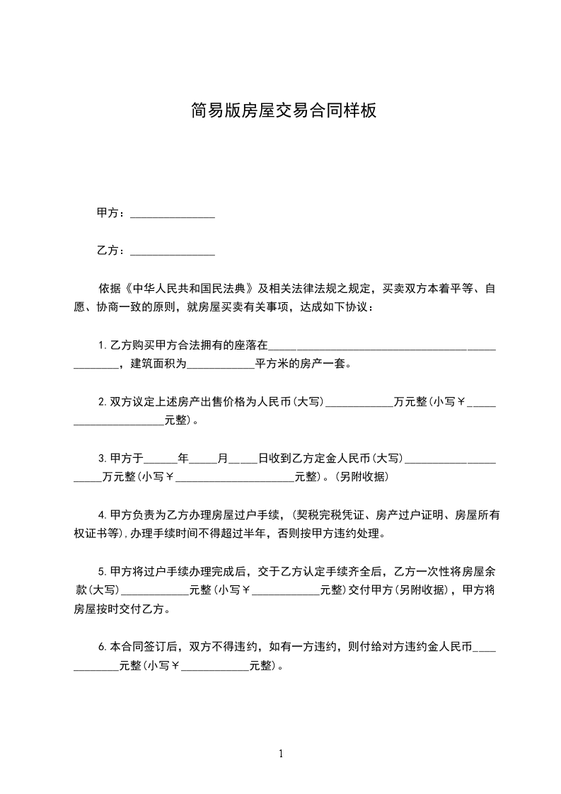 甲方自愿将座落于________市________区________街道________小区________栋________号,产权登记建筑面积共______平方米,______室______厅______厨______卫的房产售卖给乙方。