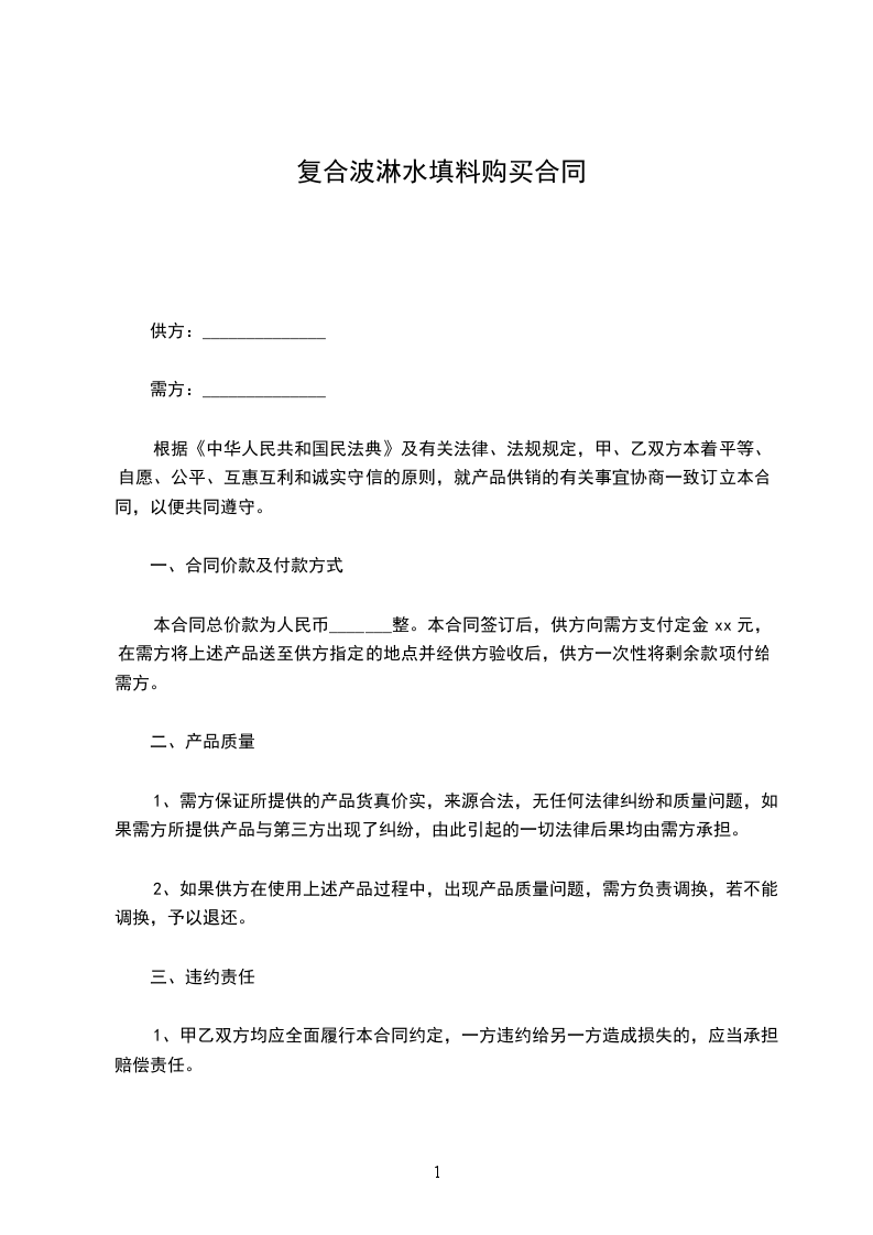 根据《中华人民共和国民法典》及有关法律、法规规定,甲、乙双方本着平等、自愿、公平、互惠互利和诚实守信的原则,就产品供销的有关事宜协商一致订立本合同,以便共同遵守。