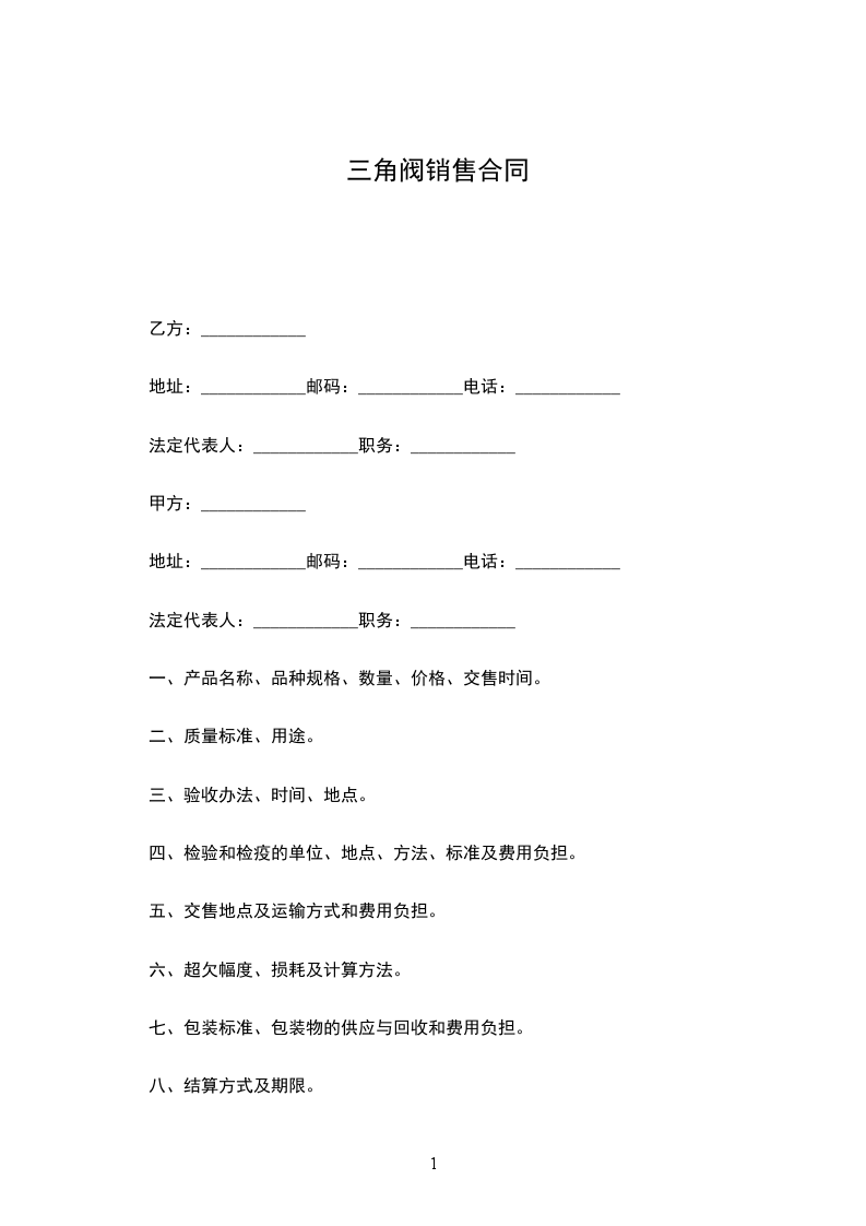 阀体销售合同