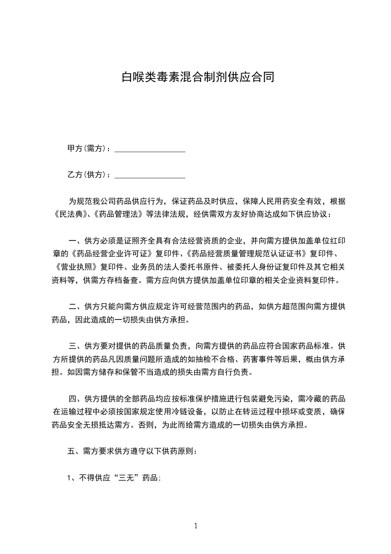 为规范我公司药品供应行为,保证药品及时供应,保障人民用药安全有效,根据《民法典》、《药品管理法》等法律法规,经供需双方友好协商达成如下供应协议:
