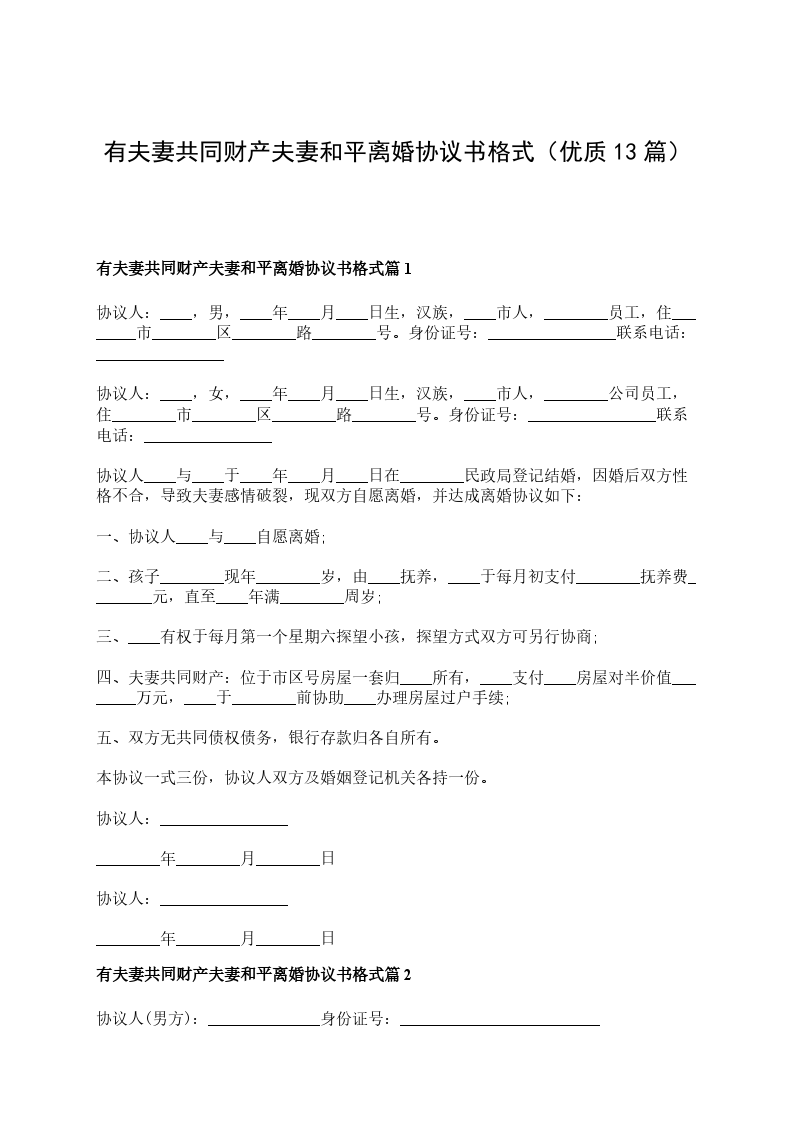 五、本协议一式三份,男女双方各持一份,存婚姻登记档案一份。