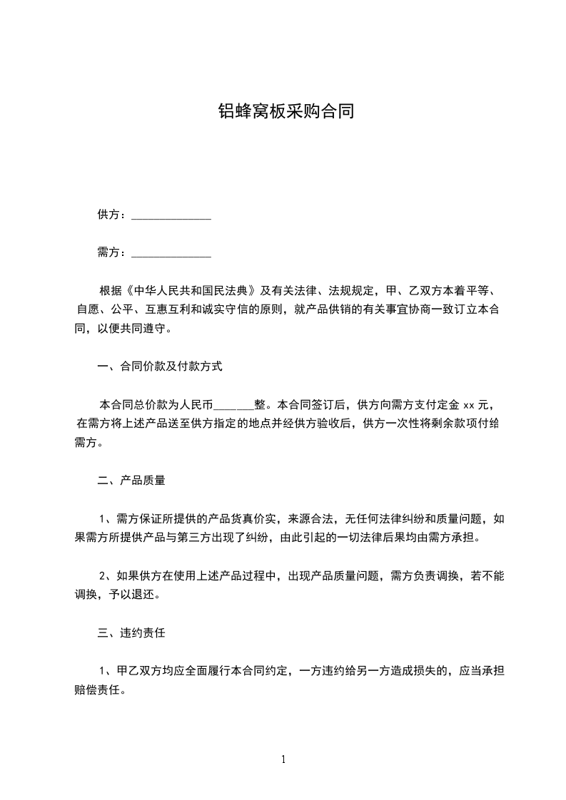 根据《中华人民共和国民法典》及有关法律、法规规定,甲、乙双方本着平等、自愿、公平、互惠互利和诚实守信的原则,就产品供销的有关事宜协商一致订立本合同,以便共同遵守。