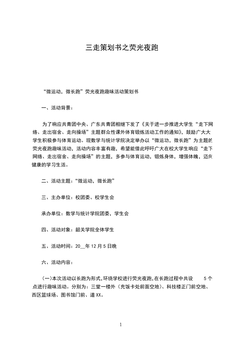 “微运动,微长跑”荧光夜跑趣味活动策划书