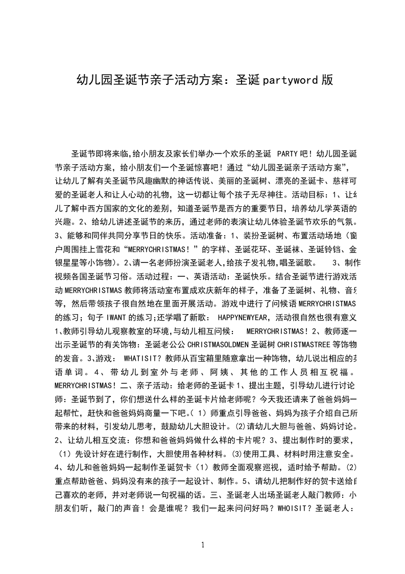 活动日期:一、活动内容:《庆圣诞、迎新年》二、活动目的(一)通过亲子游戏增进幼儿与家长之间的情感交流。(二)懂得团结合作、共同闯关的道理,感受成功的喜悦。(三)让幼儿能大胆地在集体面前表现自己,积极主动地参加集体活动。(四)体验集体过节的愉快心情。