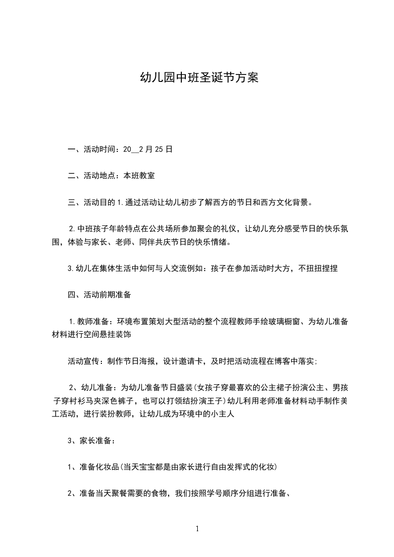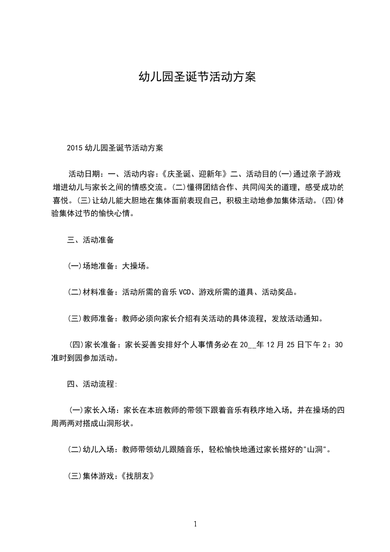 (四)家长准备:家长妥善安排好个人事情务必在20__年12月25日下午2:30准时到园参加活动。