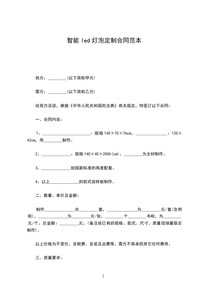 智能led灯泡买卖合同