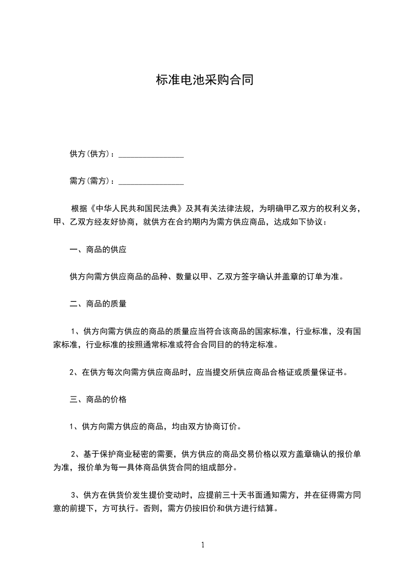 标准电池采购合同