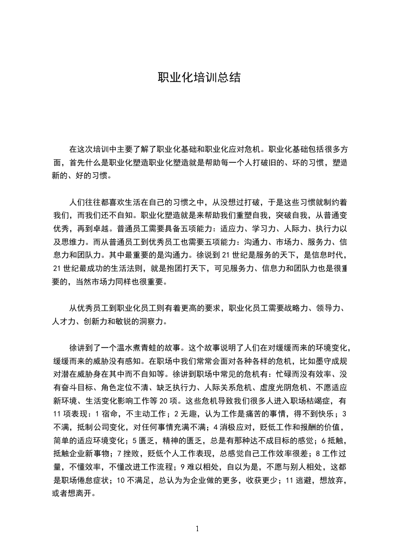 在这次培训中主要了解了职业化基础和职业化应对危机。职业化基础包括很多方面,首先什么是职业化塑造职业化塑造就是帮助每一个人打破旧的、坏的习惯,塑造新的、好的习惯。