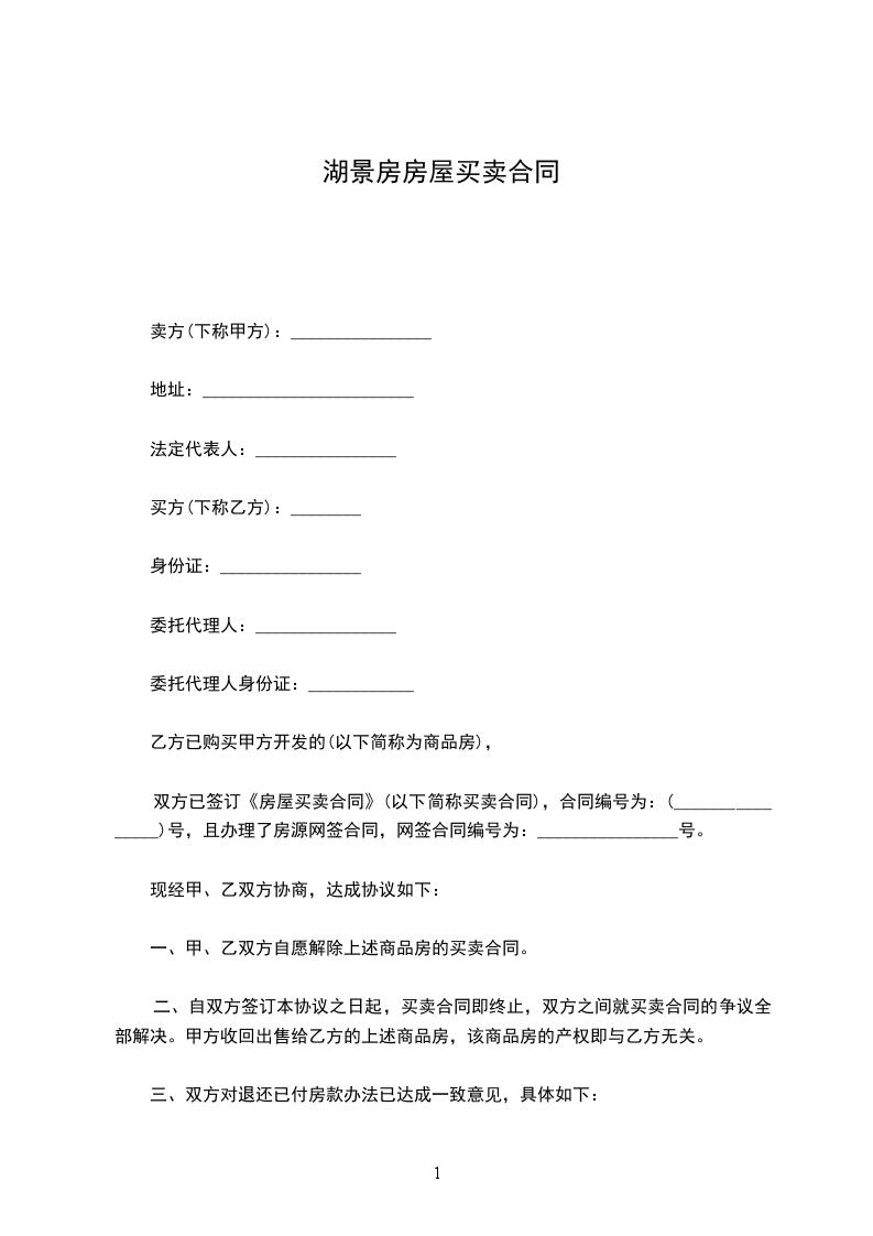 二、自双方签订本协议之日起,买卖合同即终止,双方之间就买卖合同的争议全部解决。甲方收回出售给乙方的上述商品房,该商品房的产权即与乙方无关。