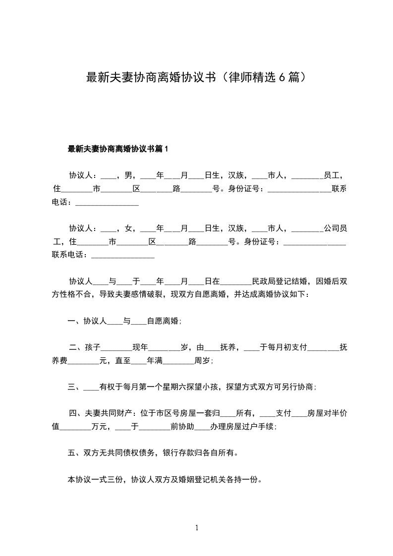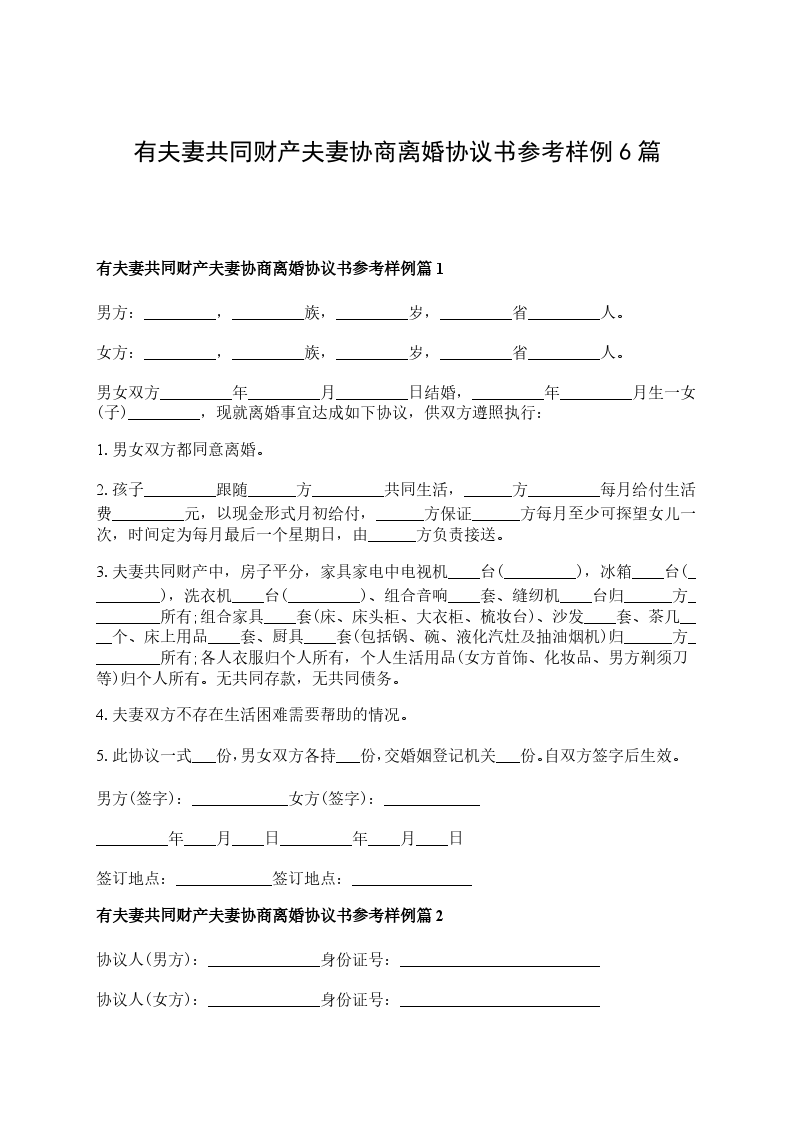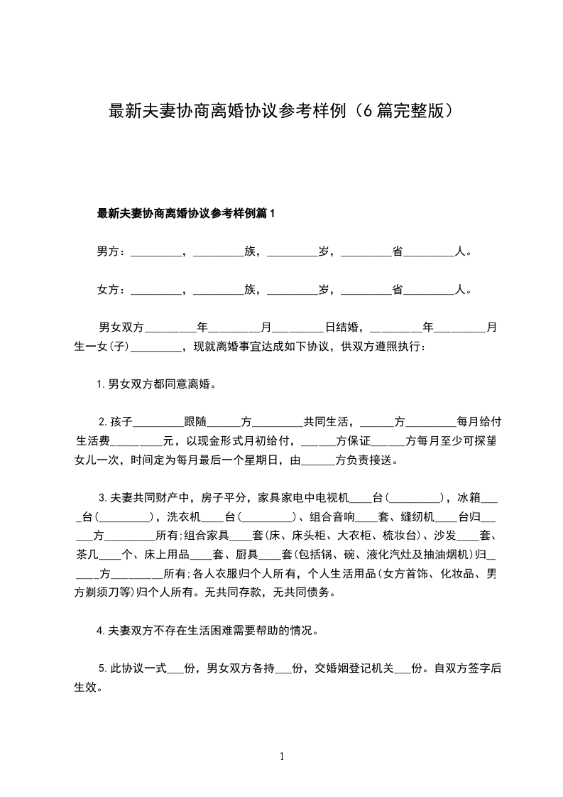 最新夫妻协商离婚协议书参考样例篇6