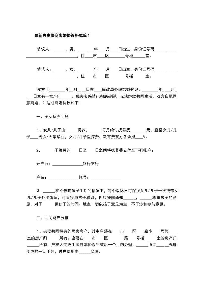 最新夫妻协商离婚协议书参考样例篇5