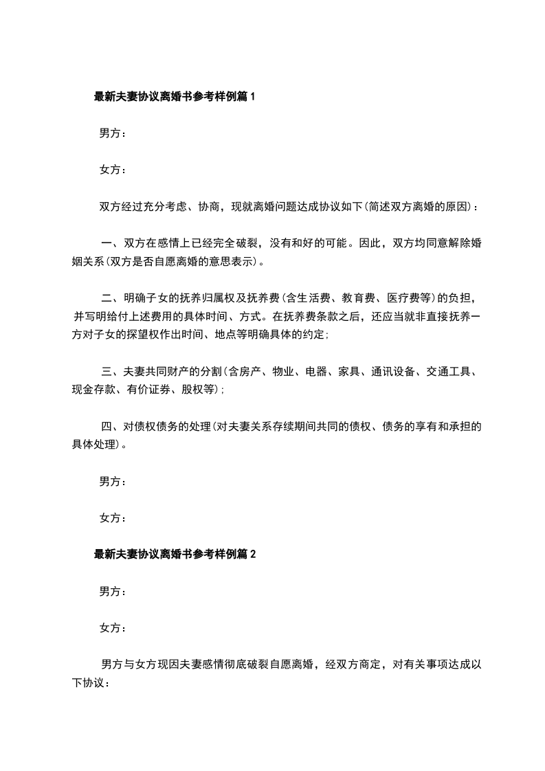 最新夫妻协商离婚协议书参考样例篇2