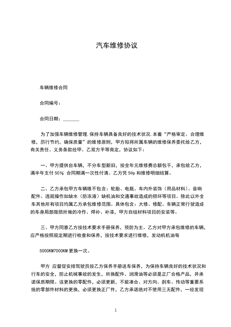 车辆维修合同