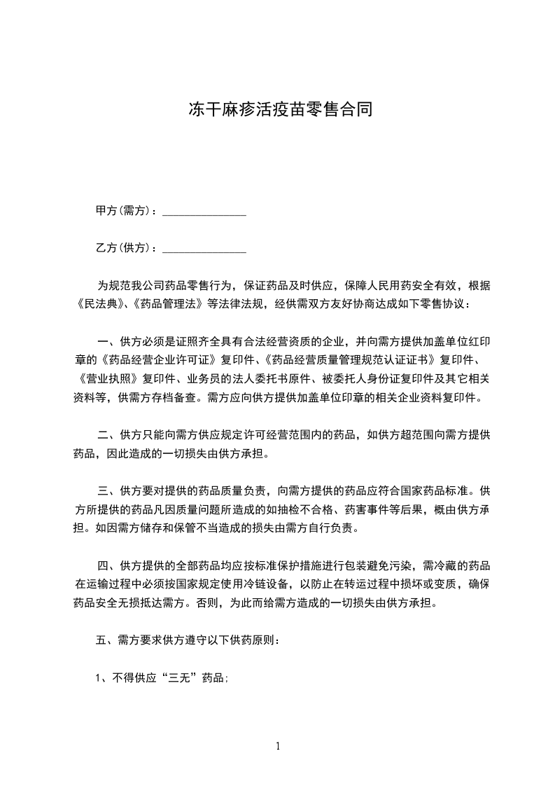 为规范我公司药品零售行为,保证药品及时供应,保障人民用药安全有效,根据《民法典》、《药品管理法》等法律法规,经供需双方友好协商达成如下零售协议: