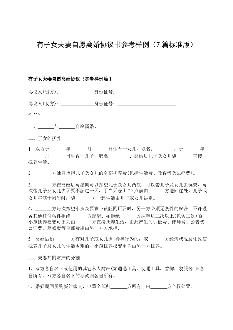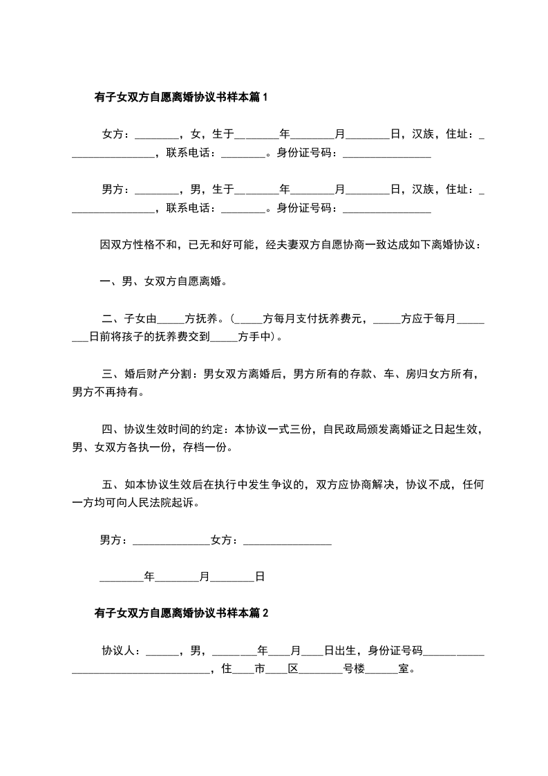 有子女自愿离婚协议书参考格式篇6