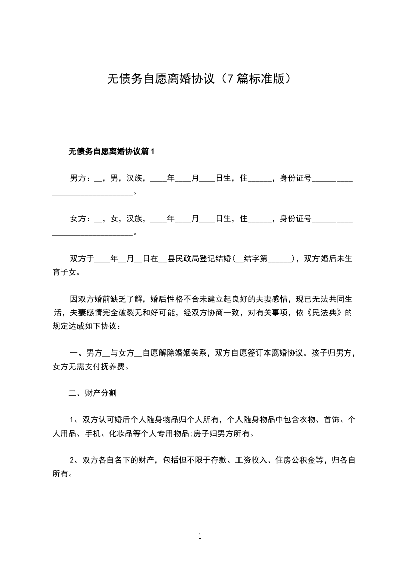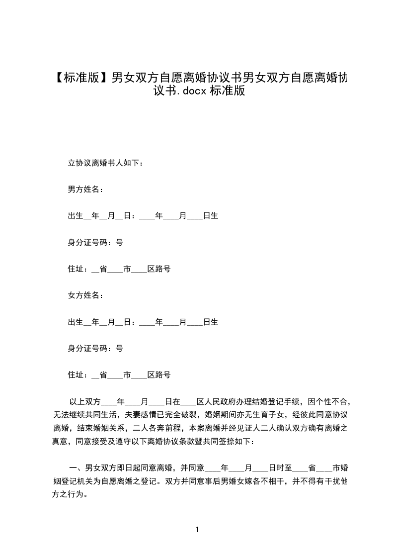女方姓名:___________出生年月:___________民族:___________身份证号:___________住址:___________