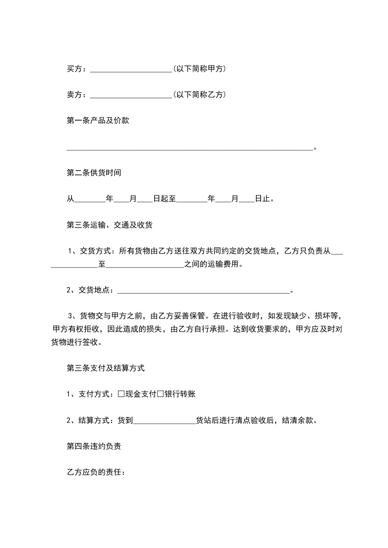 1、卖方自_________年_________月_________日起至_________年_________月_________日止向买方采购货品。
