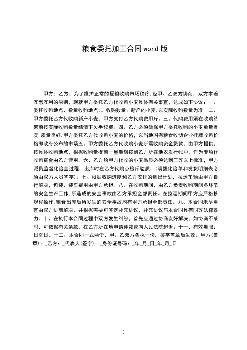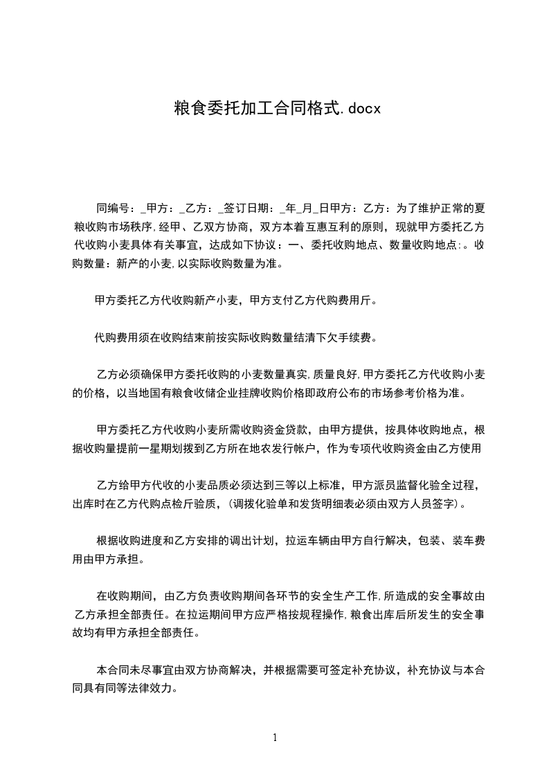 为了维护正常的夏粮收购市场秩序,经甲、乙双方协商,双方本着互惠互利的原则,现就甲方委托乙方代收购XX具体有关事宜,达成如下协议: