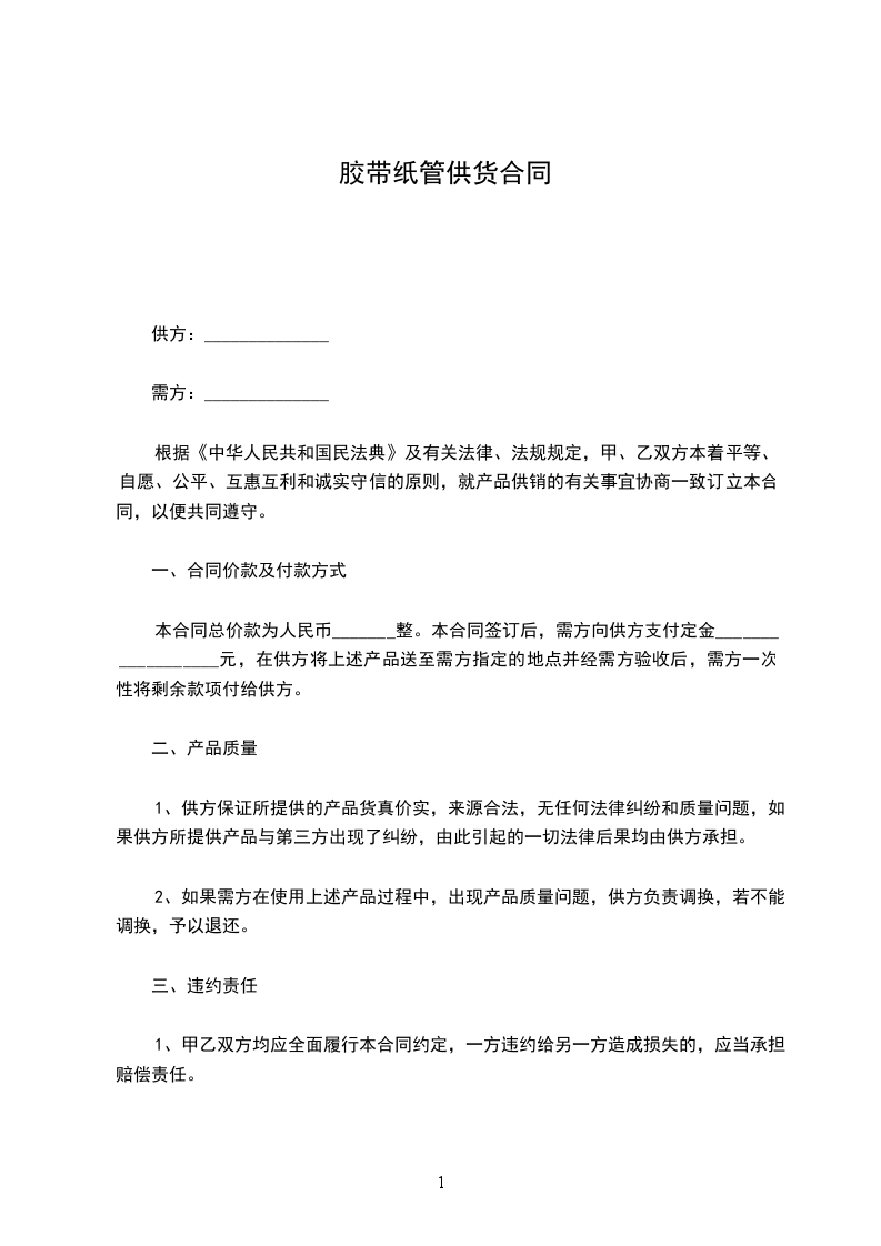 供方单位(卖方):____________需方单位(买方):____________