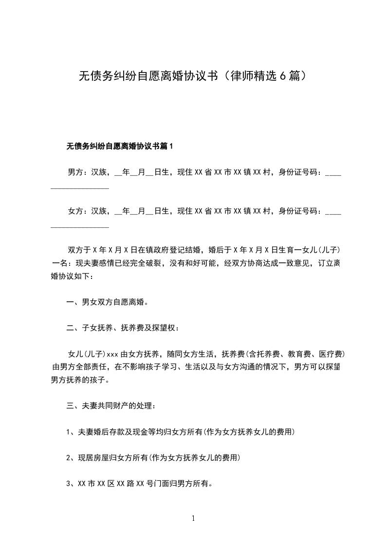 无债务纠纷自愿离婚协议书篇6