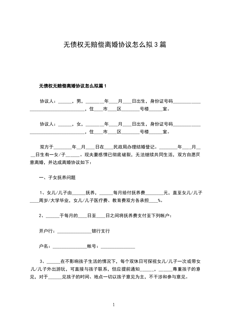 无债权无赔偿离婚协议怎么拟篇2