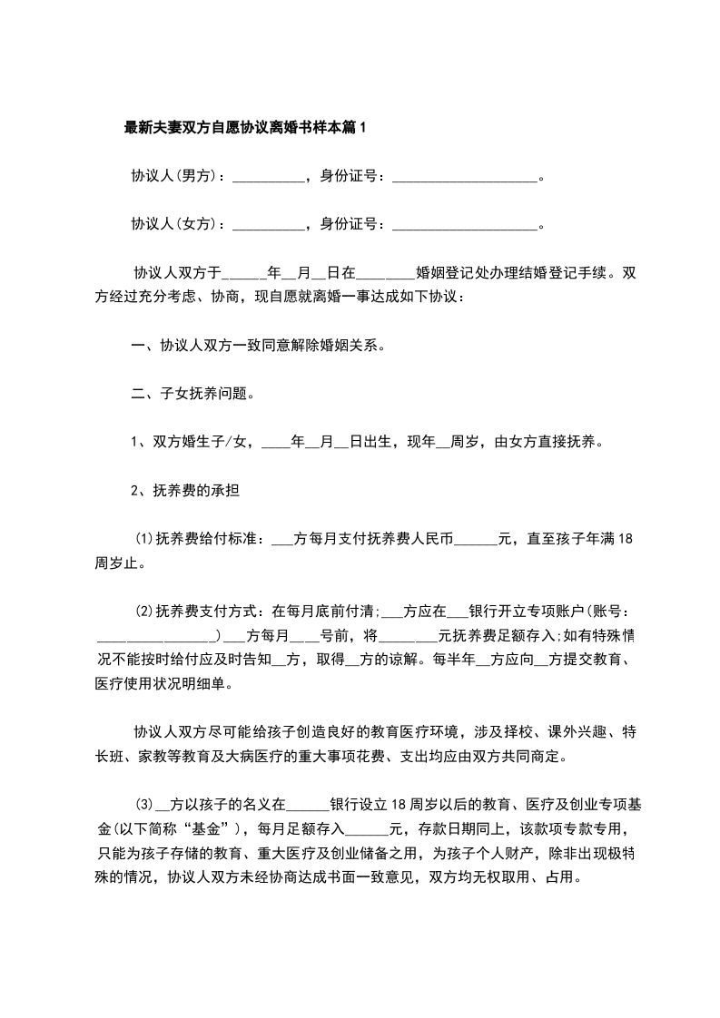 最新夫妻双方自愿协议离婚书样本篇12