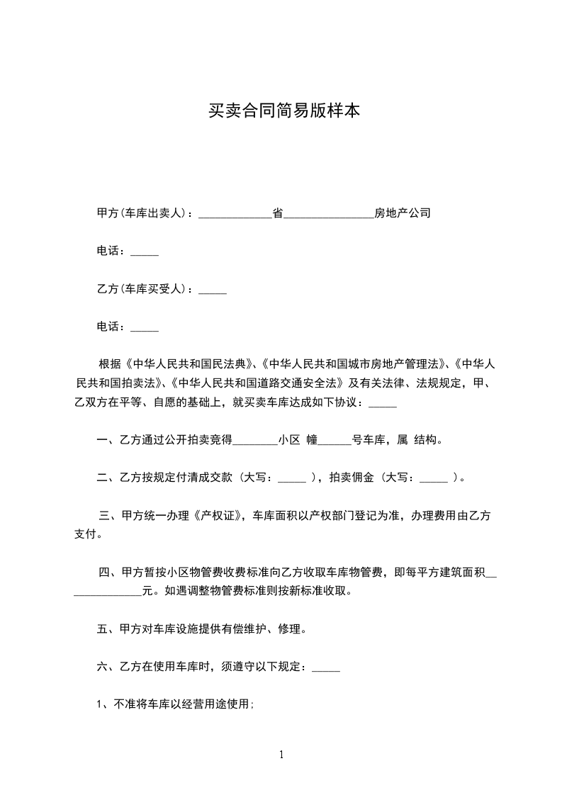 根据《中华人民共和国民法典》、《中华人民共和国城市房地产管理法》、《中华人民共和国拍卖法》、《中华人民共和国道路交通安全法》及有关法律、法规规定,甲、乙双方在平等、自愿的基础上,就买卖车库达成如下协议:_____