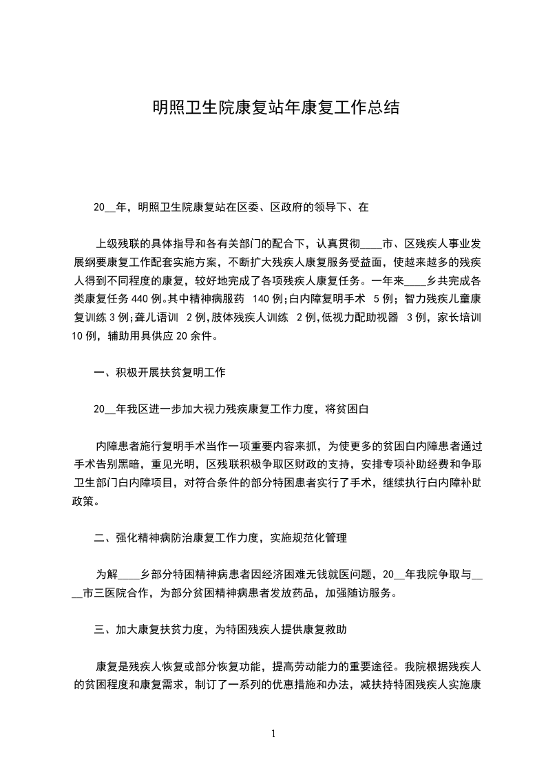20__年,明照卫生院康复站在区委、区政府的领导下、在