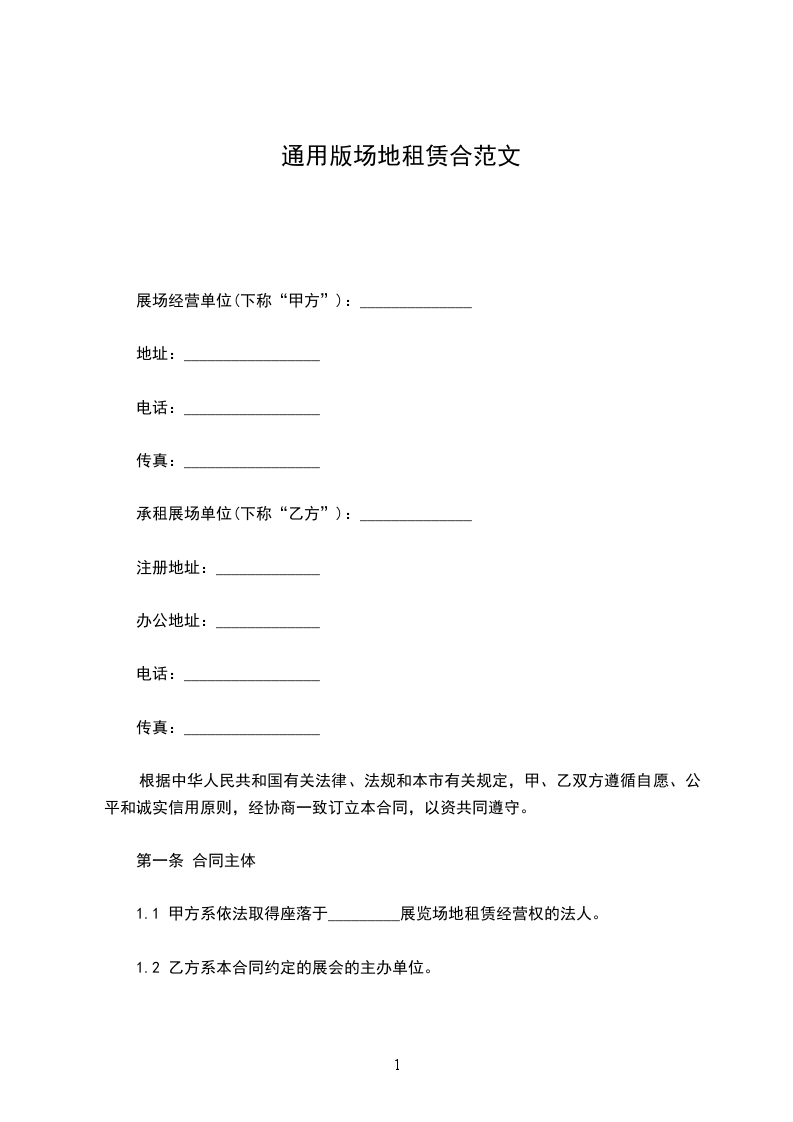 第一条 租赁场地