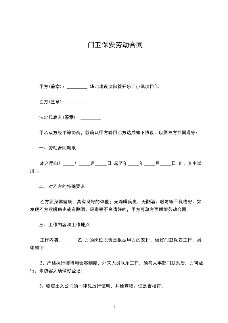 工作内容:______乙 方的岗位职责是根据甲方的安排,做好门卫保安工作,具体如下: