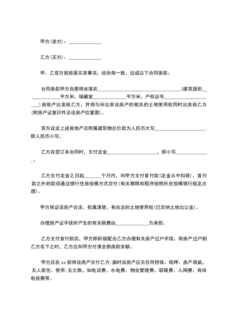甲、乙双方就房屋买卖事项,经协商一致,达成以下合同条款: