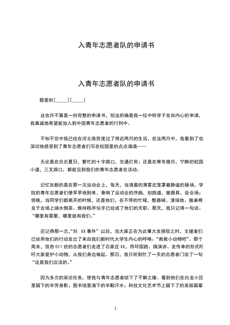 这也许不算是一份完整的申请书,但这的确是我一位中转学子发自内心的申请,我真诚地希望能加入到中国青年志愿者的行列中。