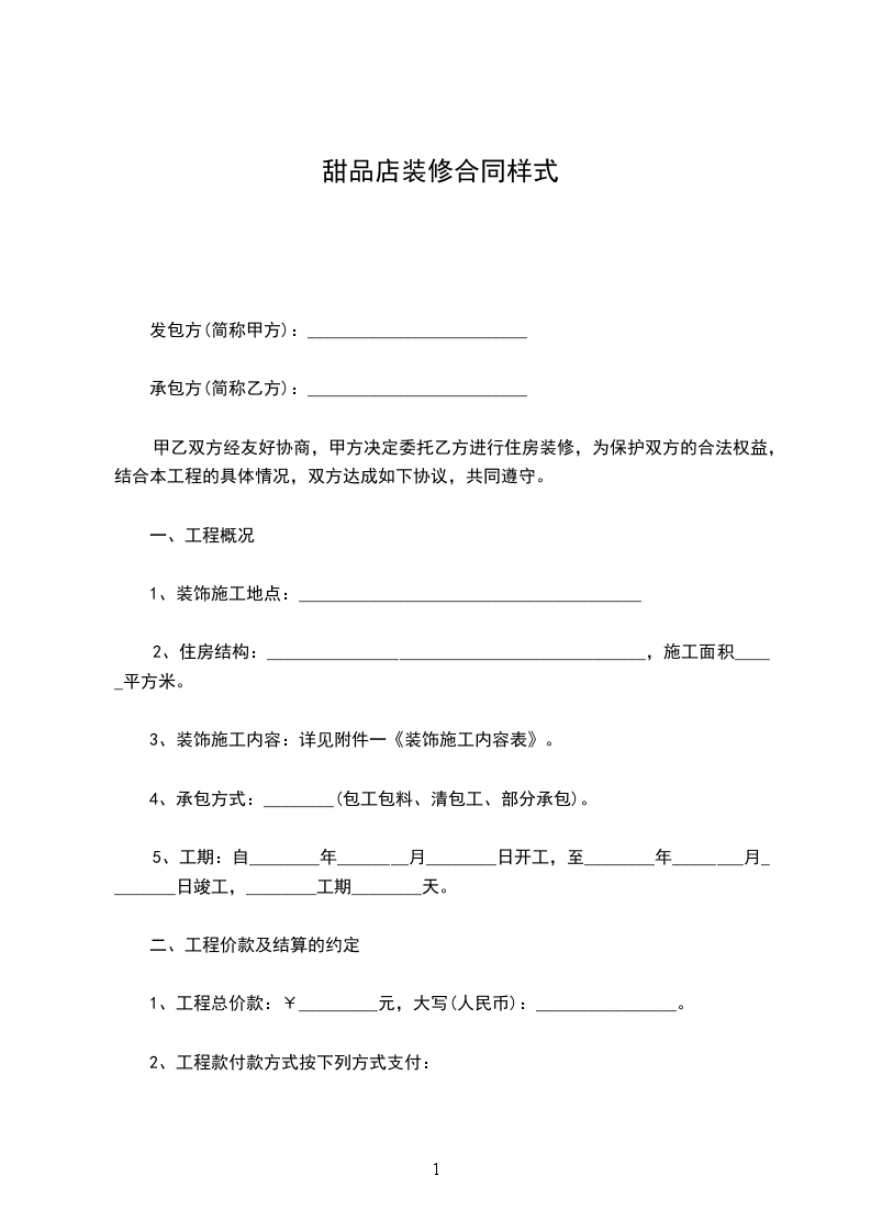 4、承包方式:________(包工包料、清包工、部分承包)。