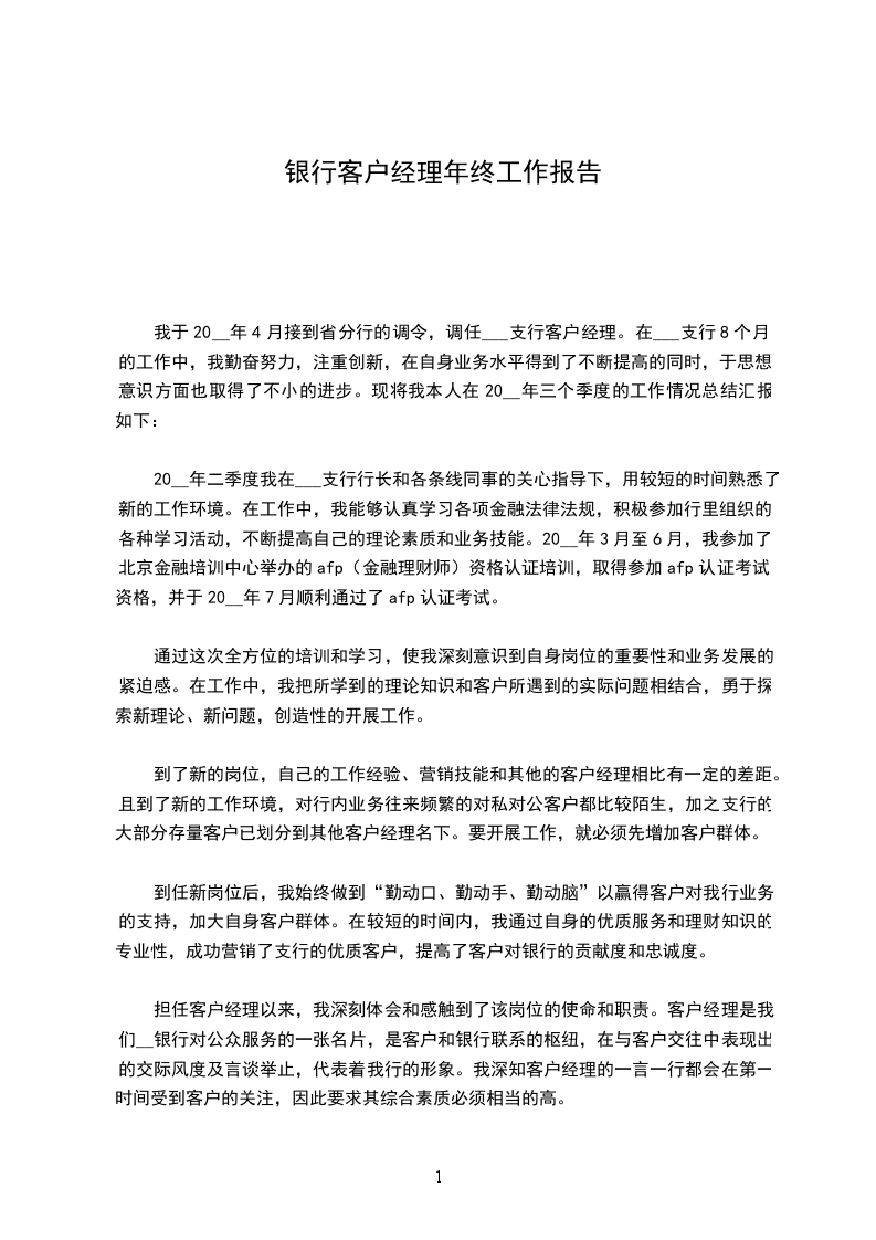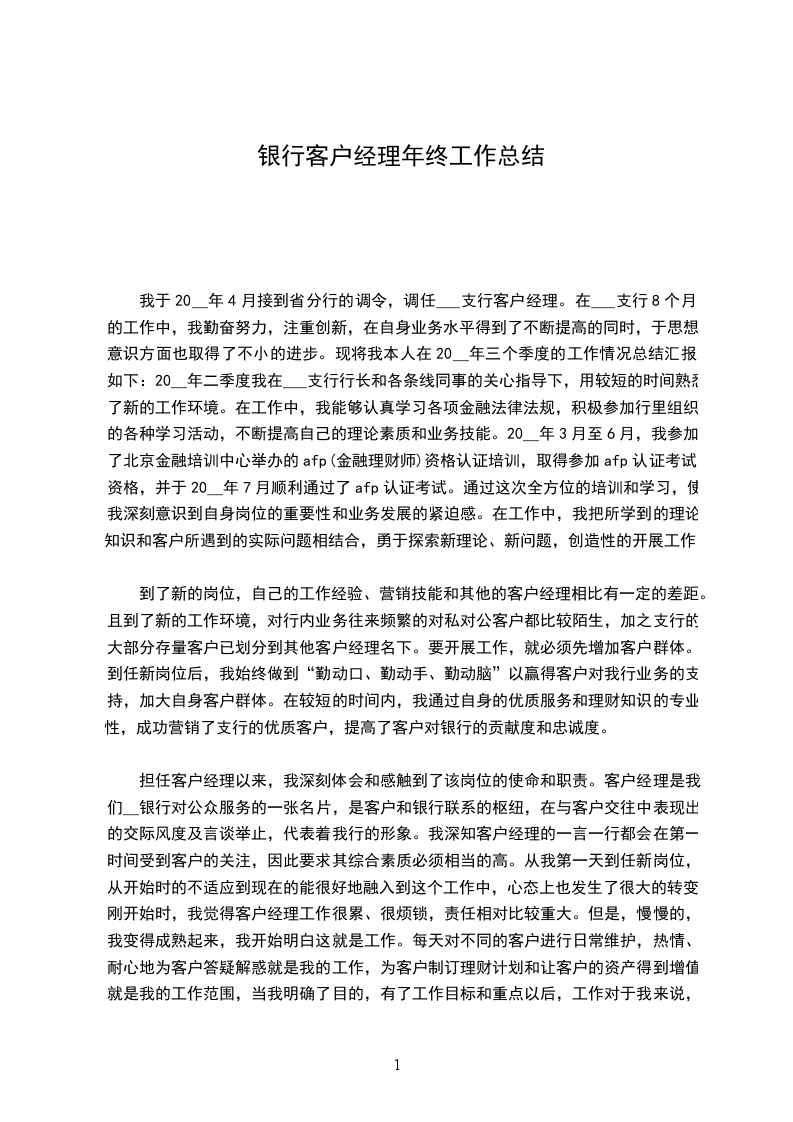 我于20__年4月接到省分行的调令,调任___支行客户经理。在___支行8个月的工作中,我勤奋努力,注重创新,在自身业务水平得到了不断提高的同时,于思想意识方面也取得了不小的进步。现将我本人在20__年三个季度的工作情况总结汇报如下:20__年二季度我在___支行行长和各条线同事的关心指导下,用较短的时间熟悉了新的工作环境。在工作中,我能够认真学习各项金融法律法规,积极参加行里组织的各种学习活动,不断提高自己的理论素质和业务技能。20__年3月至6月,我参加了北京金融培训中心举办的afp(金融理财师)资格认证培训,取得参加afp认证考试资格,并于20__年7月顺利通过了afp认证考试。通过这次全方位的培训和学习,使我深刻意识到自身岗位的重要性和业务发展的紧迫感。在工作中,我把所学到的理论知识和客户所遇到的实际问题相结合,勇于探索新理论、新问题,创造性的开展工作。