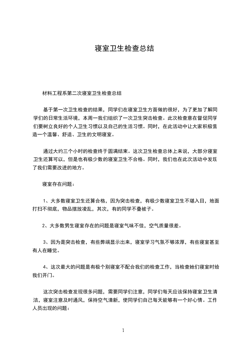 为帮助同学养成良好的卫生习惯,提高学生的综合素质,激发广大学生的共建热情,改变宿舍的卫生状况,创建一个干净、舒适、整洁、卫生、文明的住宿环境,我院生活部决定开展寝室卫生检查活动,希望通过此活动使我院宿舍文明卫生更加规范化,能够让同学们生活得更加安心、舒适。
