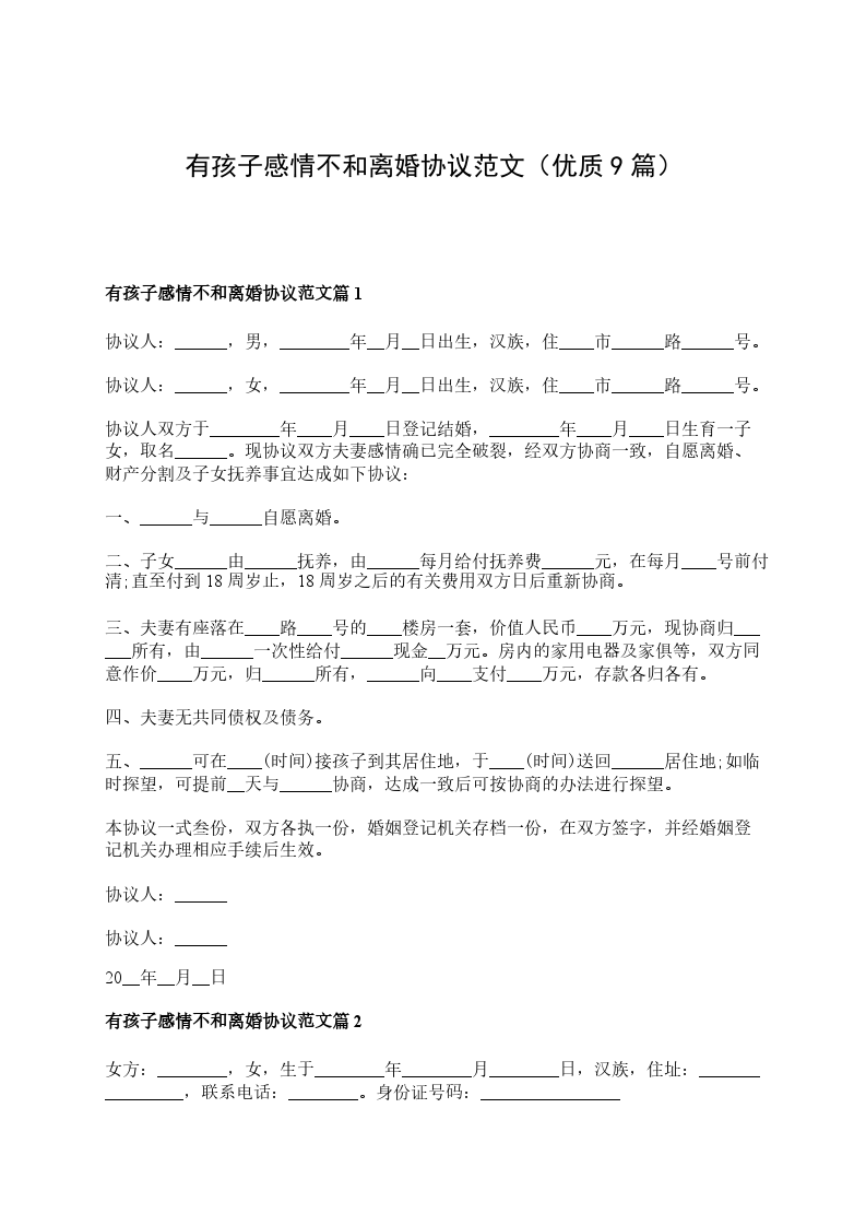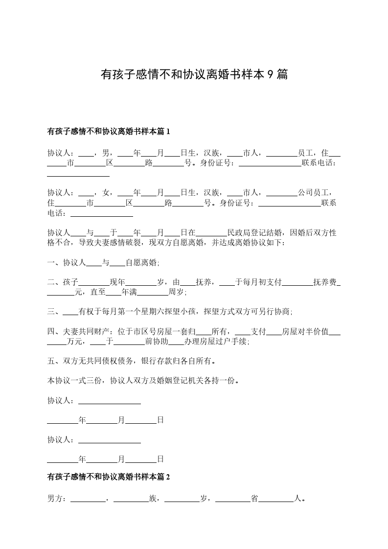 有孩子感情不和协议离婚范本篇9