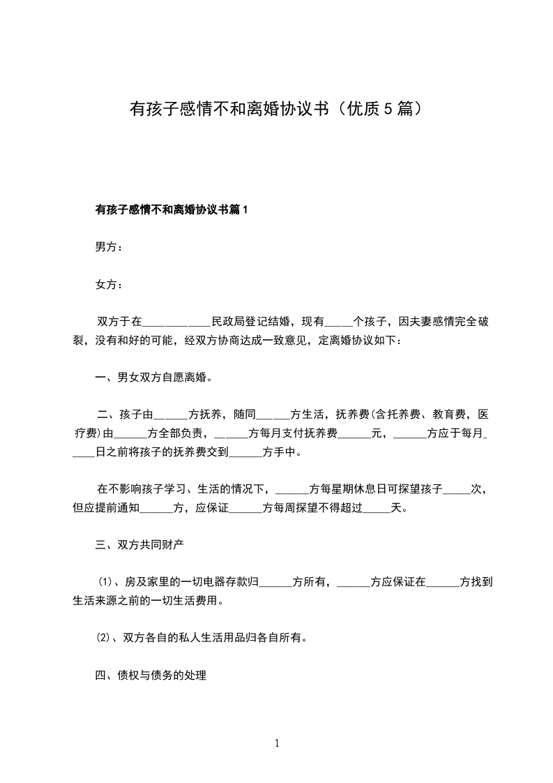 有孩子感情不和协议离婚范本篇5