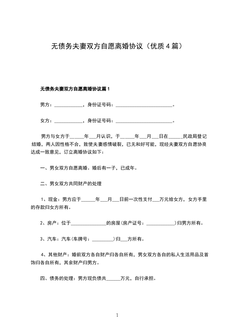 一、__________与__________自愿离婚。