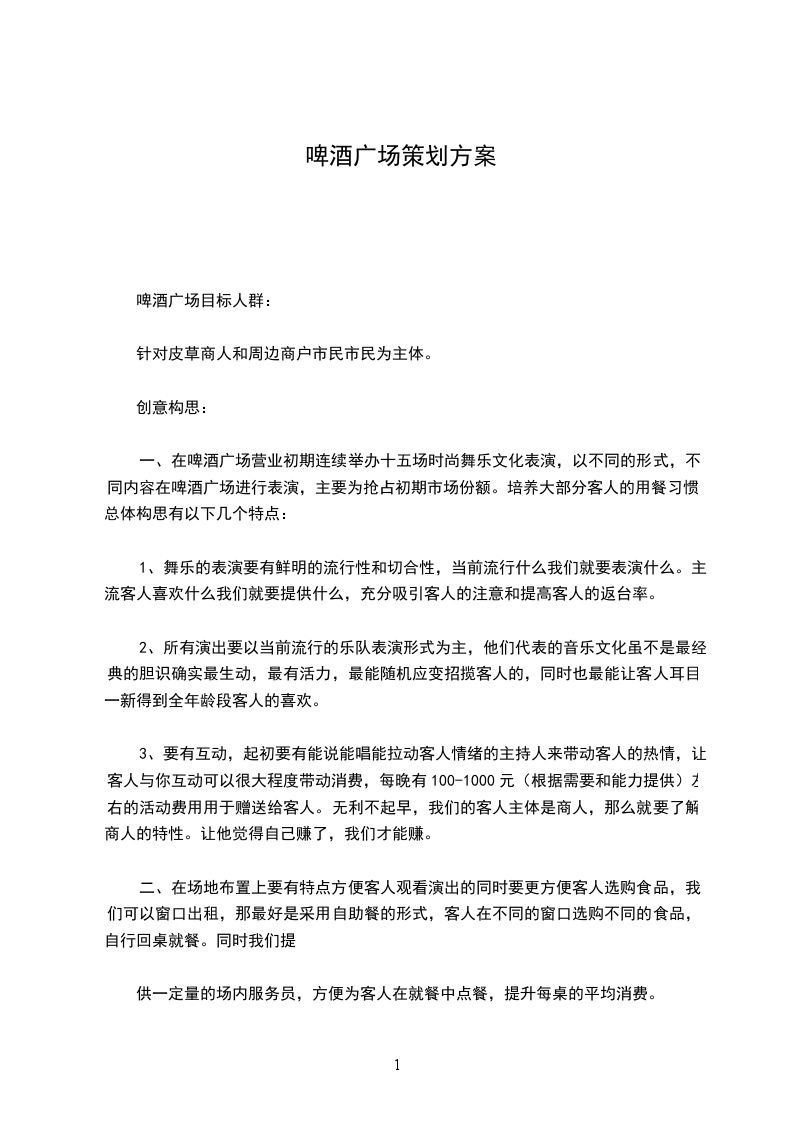 一、在啤酒广场营业初期连续举办十五场时尚舞乐文化表演,以不同的形式,不同内容在啤酒广场进行表演,主要为抢占初期市场份额。培养大部分客人的用餐习惯。总体构思有以下几个特点: