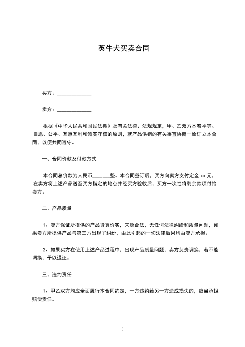 牛头梗犬销售合同