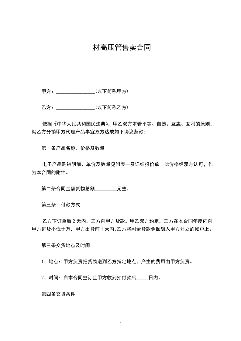 依据《中华人民共和国民法典》,甲乙双方本着平等、自愿、互惠、互利的原则,就乙方分销甲方代理产品事宜双方达成如下协议条款: